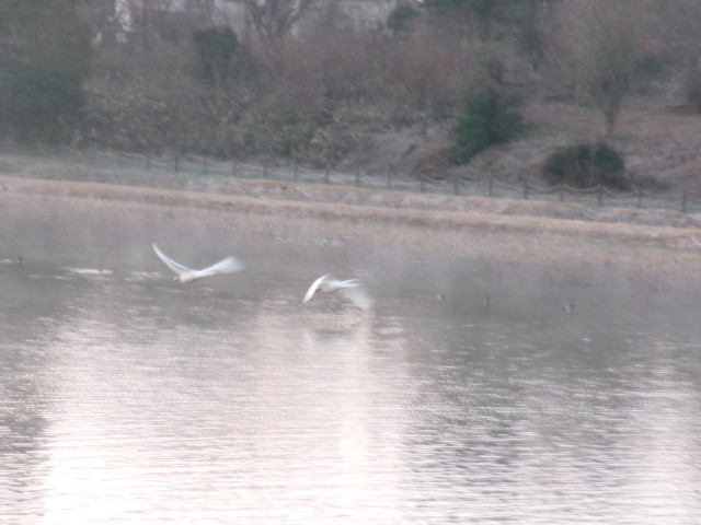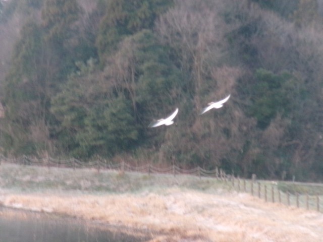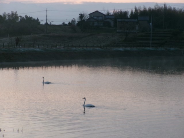 6時5分、2羽の白鳥が南へ飛んでいきました。