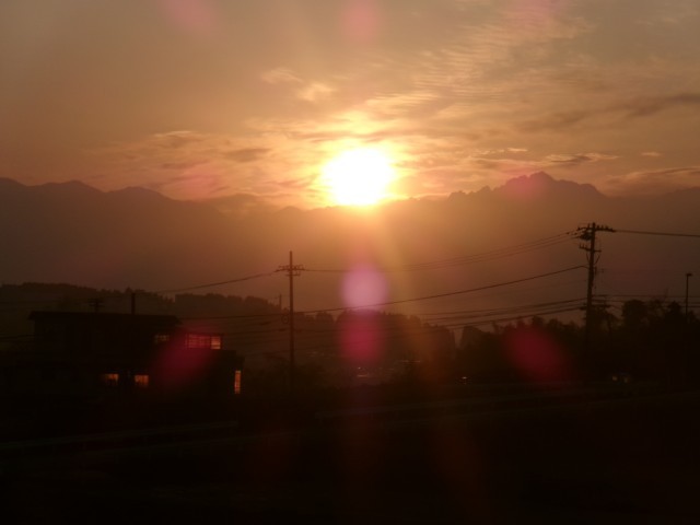 立山連峰の稜線から太陽が上がってきました。
