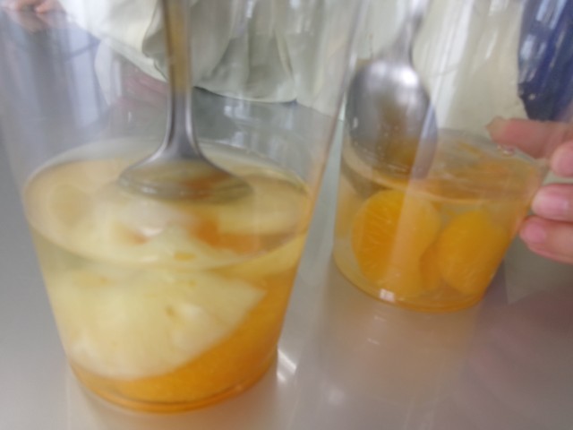 フルーツポンチを作り、おいしく味わっています。