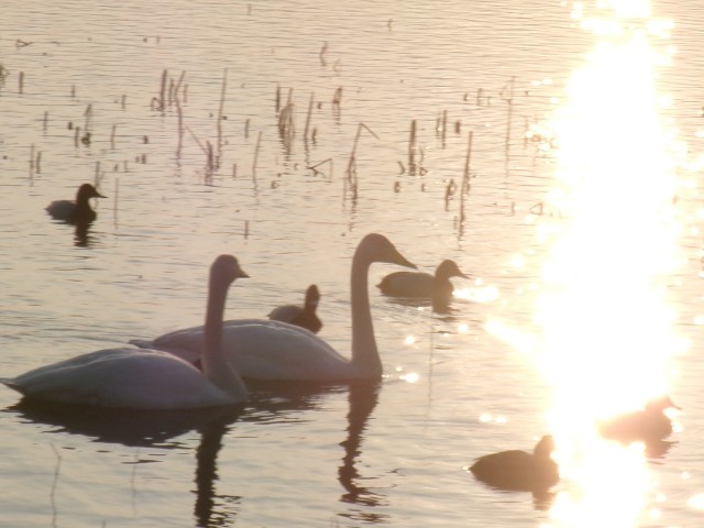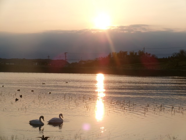 田尻池と白鳥に多くの方が魅了されています。