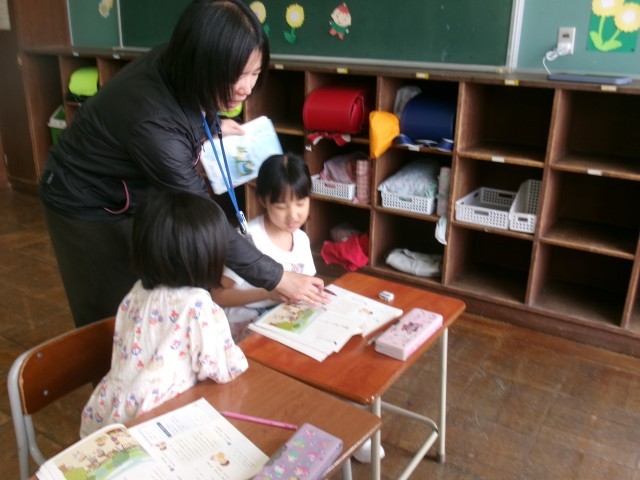 国語の時間、1年生は音読中心。