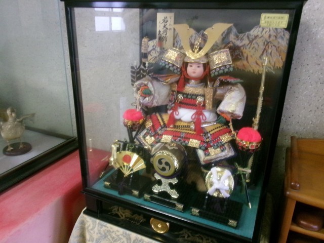 正面玄関に五月人形を飾りました。