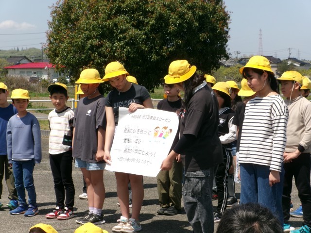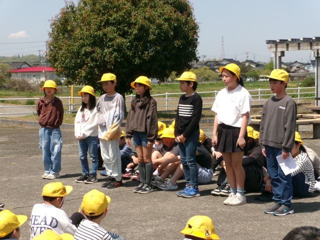 西押川公園にて児童会発足式と結団式を行い、リーダーたちの力強い決意表明に全校児童の心が一つになりました。頼もしい言葉にやる気がぐんと高まり、運動会や今後の活動に向けて最高のスタートを切ることができました。