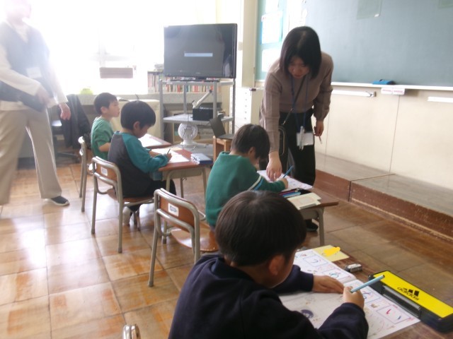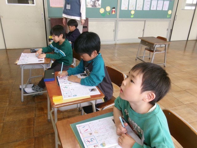 1年生はひらがなの書き方を学んでいました。