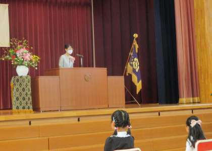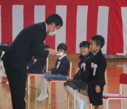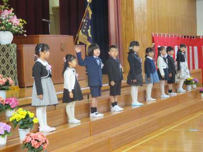 式辞をよい姿勢で聞き、呼名に元気に応え、祝い品の贈呈ではしっかりお礼を言うことができた新入生です。