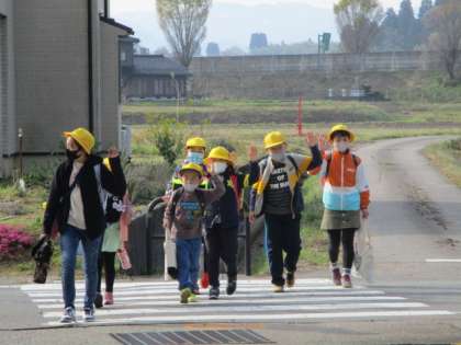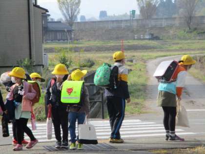 山本方面から登校する子供たちは、信号のない横断歩道で停止した車のドライバーに必ずお辞儀をします。