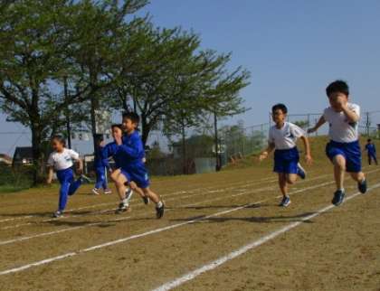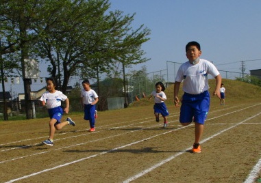 用務員さんが日頃整備し、登校前に体育主任を中心にラインを引いて整えてあるグラウンドです。