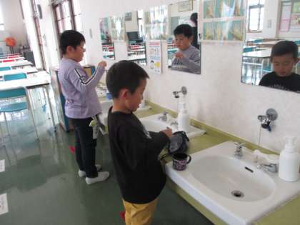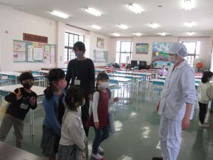 調理員さんとが片づけのためランチルームに姿を現すと、自然にお礼が言える子供たちです。今日もおいしくいただき、食後の歯磨きもしっかりしました。