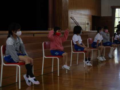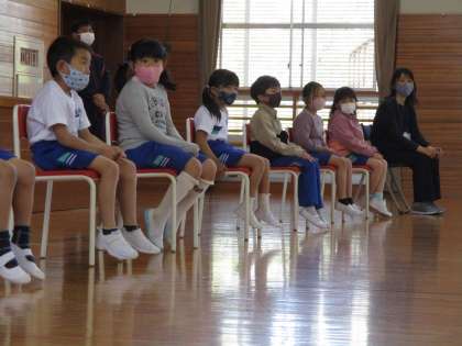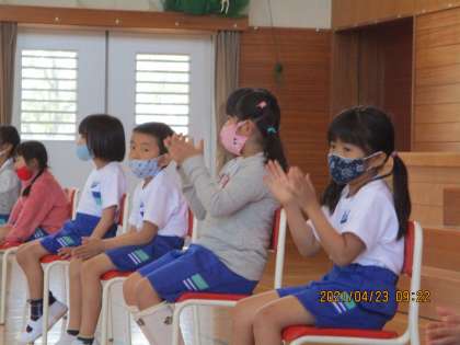 各学年からの温かい歌やプレゼント、クイズに笑顔がこぼれる1年生です。