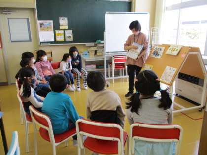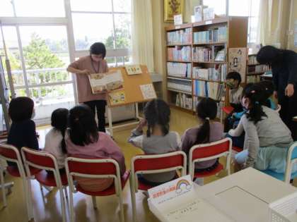 今日は司書の先生に読み聞かせをしていただきました。お話の世界にひたっています。