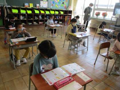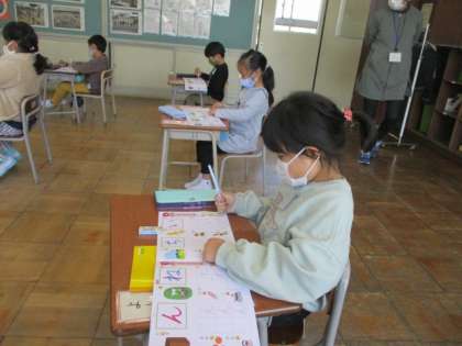 指でなぞり書きをしてから、鉛筆を持ってひらがなを一字一字練習しました。