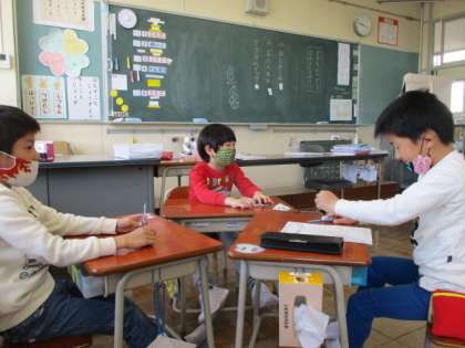 学級を楽しく過ごしやすくするための仕事を話し合っています。