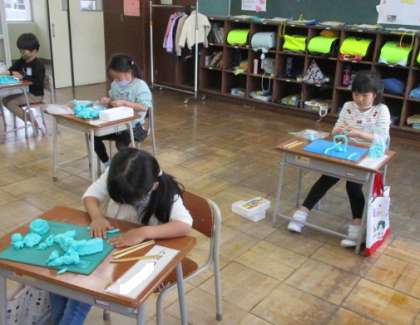 「ひもひもねんど」にして、そこからいろいろな形を作りました。