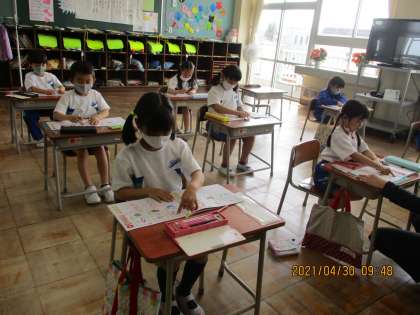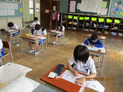平仮名を学んでいます。書き順や留め、はね、はらいに気を付けて書いています。
