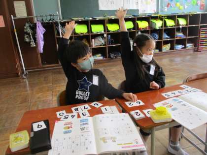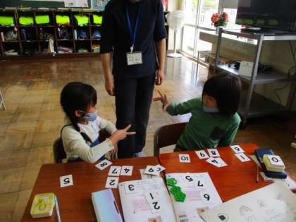 ペアで順を決めたり、相談したりしたりして、学習を進めています。