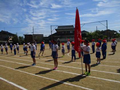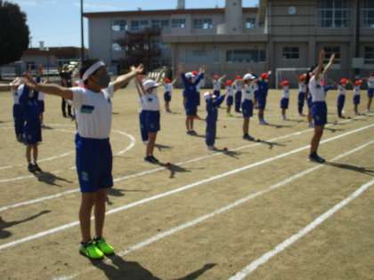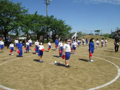 今日は、入・退場、開・閉会式、ラジオ体操を練習しました。広いグラウンドでしっかり演技できるようにがんばりました。