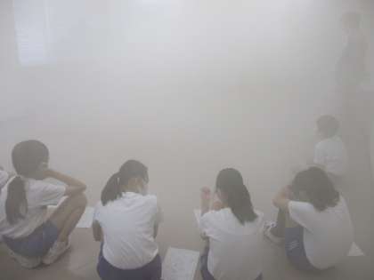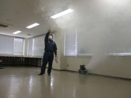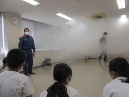 火事で発生する煙がどのように広がるかを実演してもらい、煙の性質を知り、充満した時の避難の仕方を考えました。
