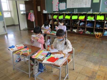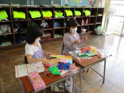 今日の図工の時間は、使う教室を赤団と白団に分けて使いました。