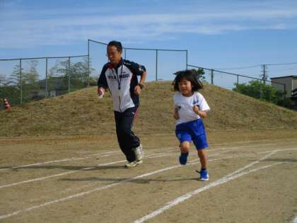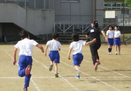 朝のトレーニングに参加する先生もがんばります。