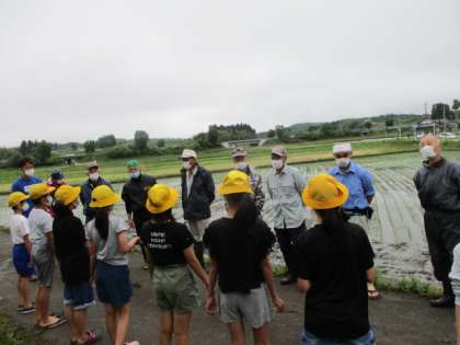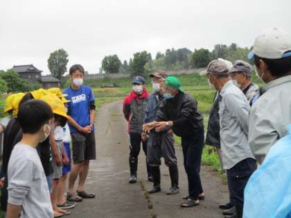 田植え後は、質問タイムとして、今後の水田管理や過去の米づくり等、たくさんの情報を教えていただきました。