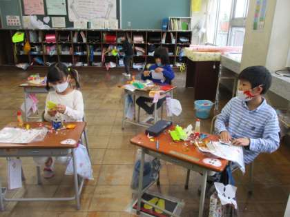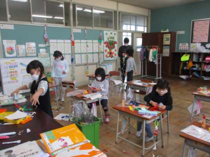 しっかり制作してから飾るタイプ、飾りながら思いついたことを形に表していくタイプ、友達の作品から発想を広げていくタイプ等、子供たちの取り組み方は様々です。