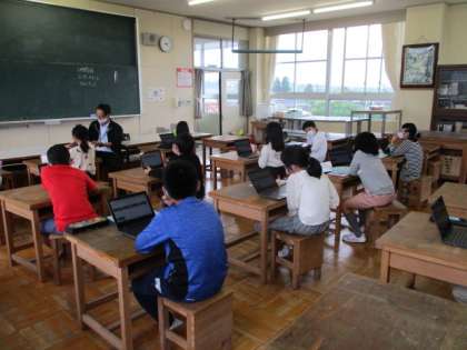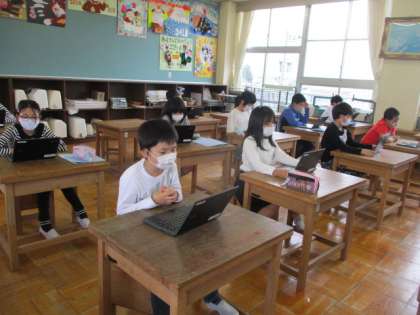 池多地区の自然や地域の特色を、一人一人がどのように捉えているのか、どのように調べたり見つけたりしていきたいかなどについて、クロムブックを使って、学習の道筋を確認し見通しをもちました。