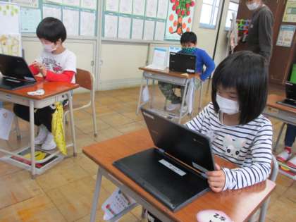 クロムブックのディスプレイに映る文章を自分で並べ替えました。