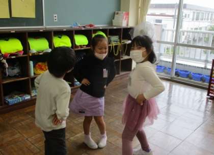 音楽に合わせて、体を動かしてダンス。笑顔いっぱいです。