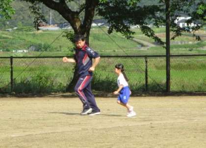 友達と競うとやる気も高まります。先生と一緒に頑張る姿も見られました。