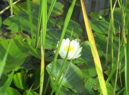 子供たちの楽しい水辺、ビオトープに水連が咲きました。