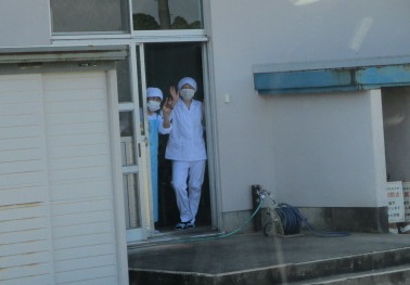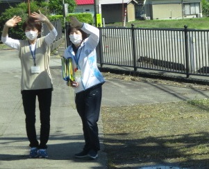 教職員に見送られて出発です。