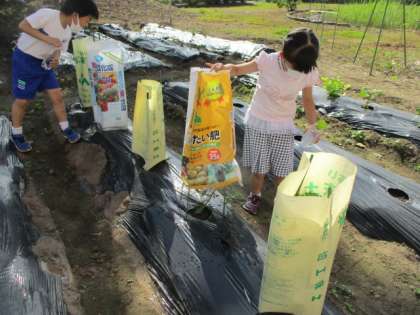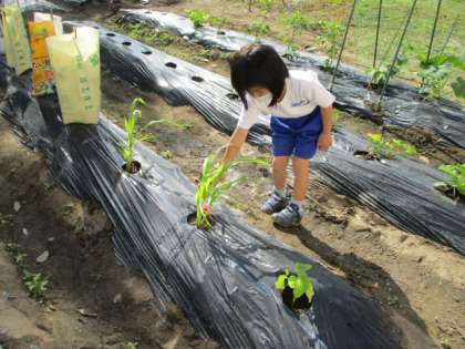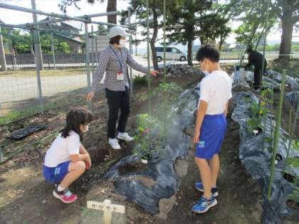 学校農園で育てている野菜。毎朝、水をやったり観察したりしています。