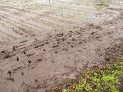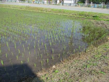 苗の成長がめざましいです。左の写真は田植え直後のものです。