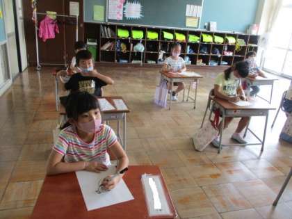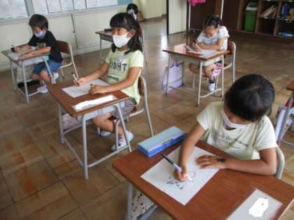 担任の先生の指示に合わせて、動物の絵を描きました。動物の表情や手足の動きを表現するときのポイントがわかりました。