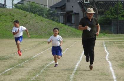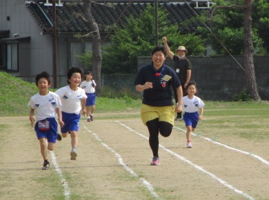 先生も走りました。 一緒に走った子供は、とてもうれしそうです。