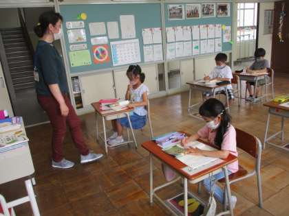 音読をしながら、繰り返して書いてあることを確認しています。