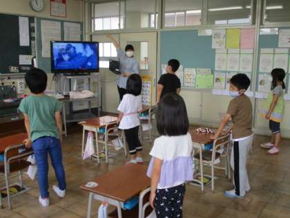 発声しやすくなる歌として「あくび」という歌を映像を見ながら歌ってみました。