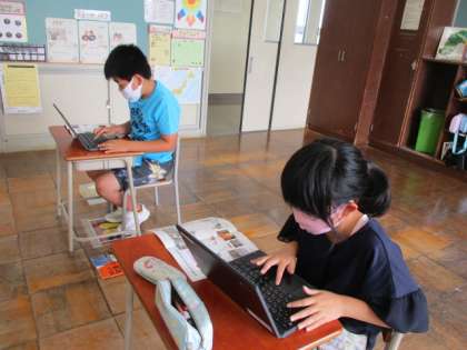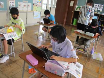 ごみの処理の工夫について資料から見つけたことをクロムブックに書き込み、みんなで共有しています。