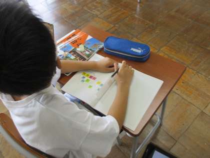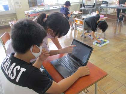 クロムブックを使って、みんなの考えを比べたりまとめたりすることにも慣れてきました。プリントアウトしてノートに貼って見直しています。副読本や資料から得られる知識を関連付けています。