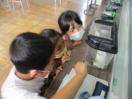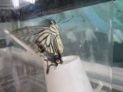 さなぎが成虫(蝶)になりました。うれしくてたまらない子供たちです。