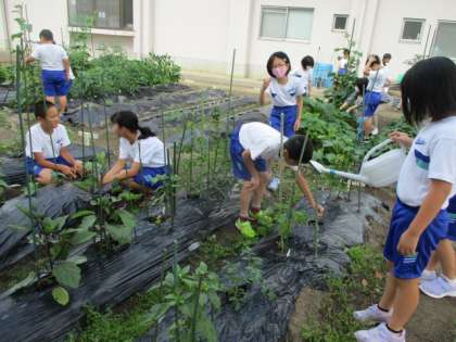 トレーニングの前後に、農園の野菜の世話をするのが池多っ子の習慣です。