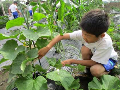 自分の野菜の成長を嬉しそうに伝える子供たちです。