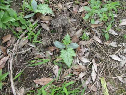 5年生が、昨年のヘチマのこぼれ種がちがう場所で発芽しているのを見つけて、水をやっていました。