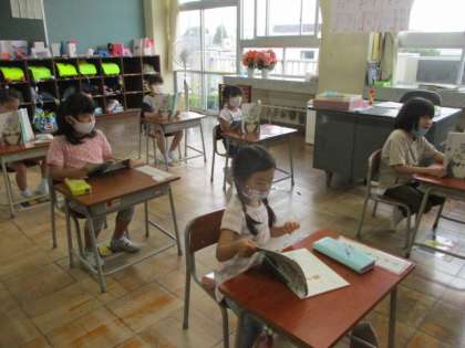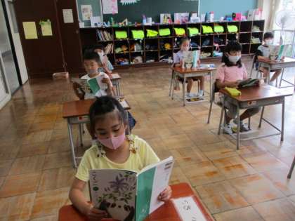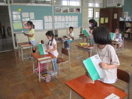 音読をしました。 列ごとに立って読んだり、全員で読んだりします。