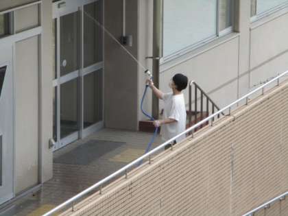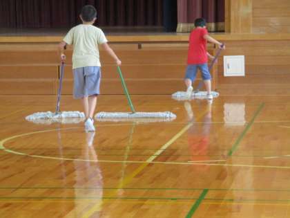 自分の担当場所清掃が早く終わった子供が、体育館清掃を進んでしています。