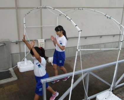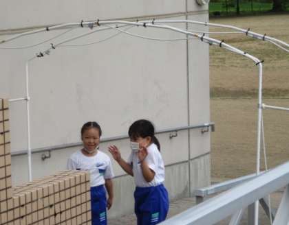 今日は、熱中症指数が高いので、朝、放送で、保健室の先生から水分補給についてのアドバイスがありました。必要に応じてエアコンも運転しています。