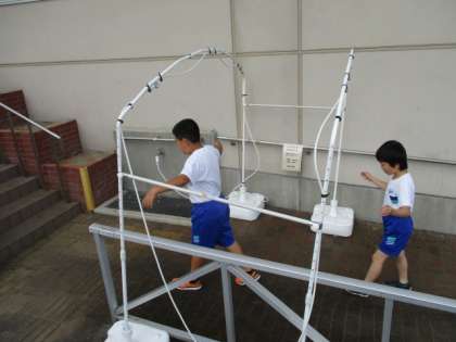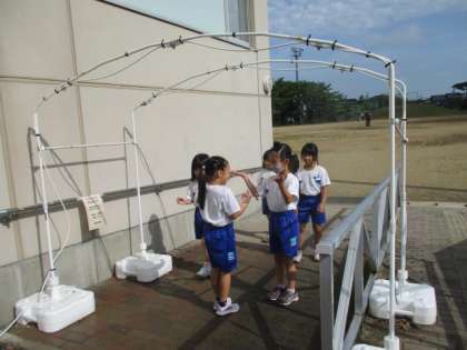 気温が高く、蒸し暑い日です。ミスト装置のおかげで涼しくなりました。