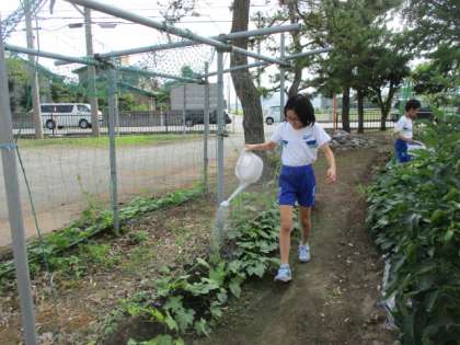 毎朝、へちまや野菜の世話と観察をしています。