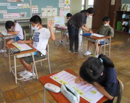 しんと静まり返った教室で、真剣に漢字学習に取り組んでいます。担任がすぐに書いた文字の確認をしました。