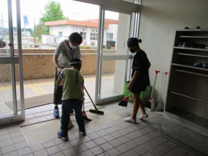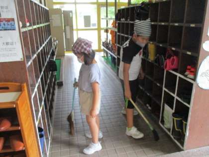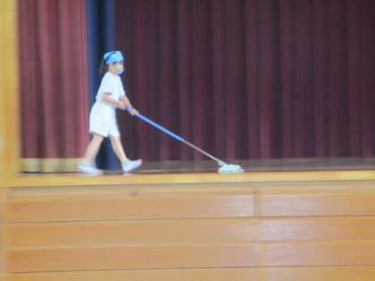 小規模校は、一人に当たる清掃場所が多いです。1年生も上学年と同じように働きます。